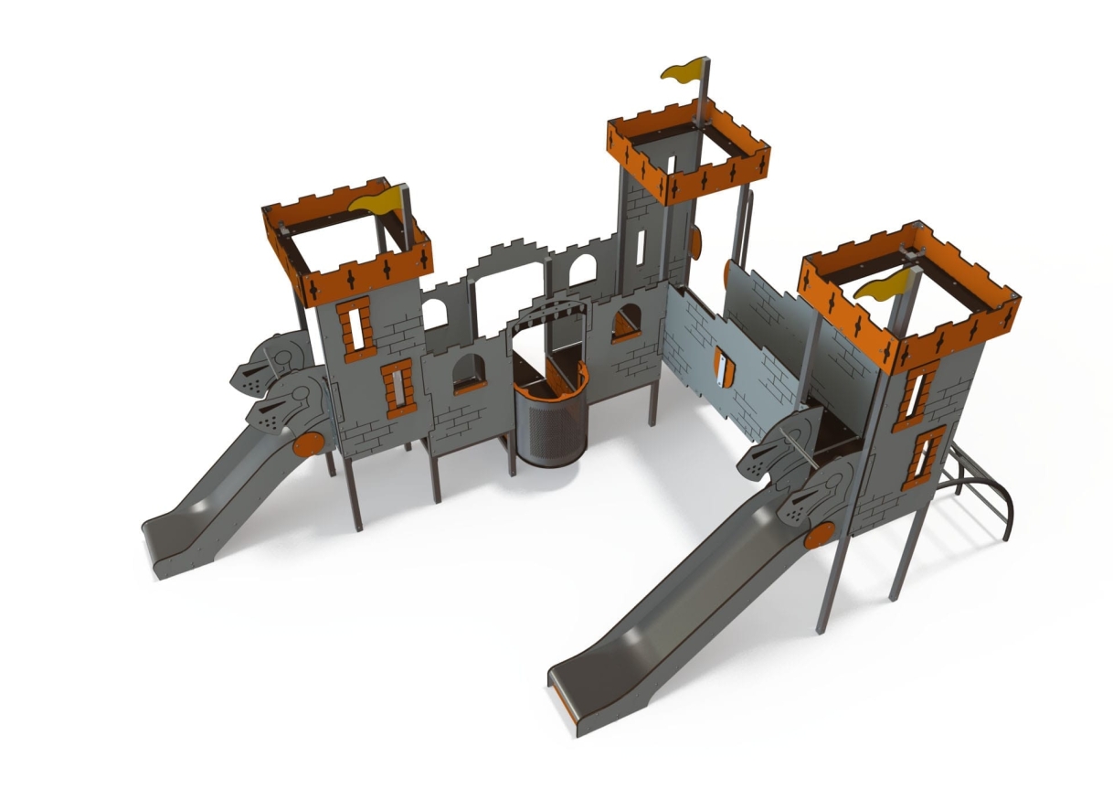 This castle has three towers with two slides, a look out point, climb ladder, climb wall, accessibility ramp and fireman's pole.