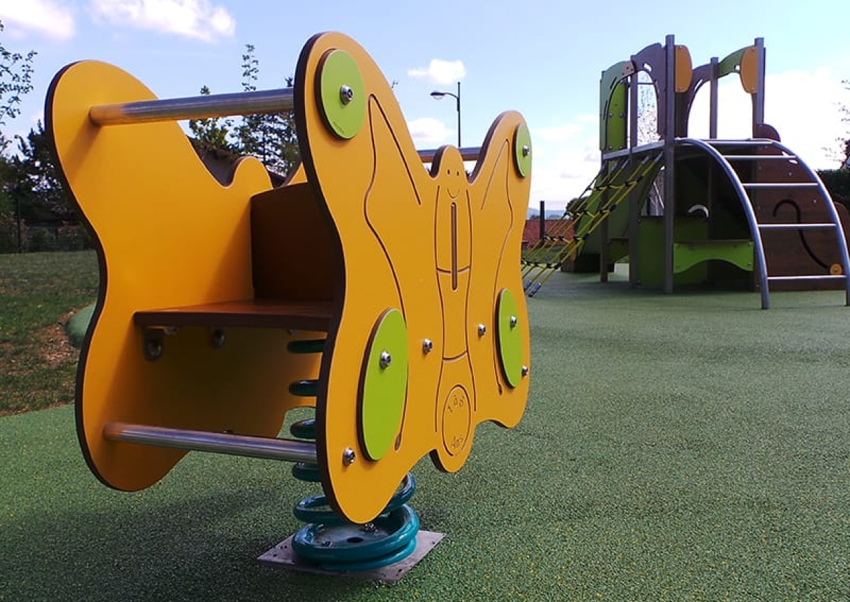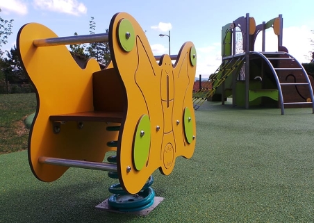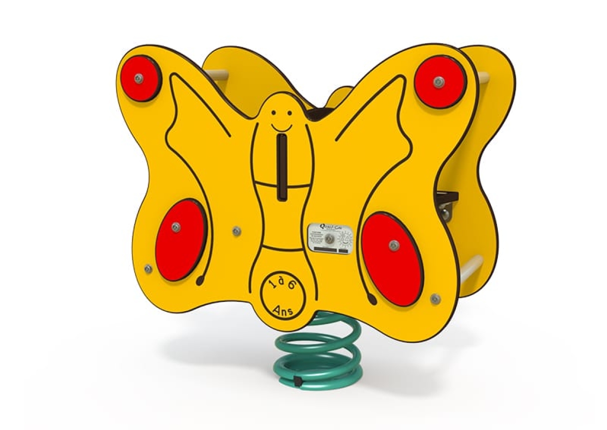 With supportive sides, hand hold and foot rest this butterfly two seater unit is perfect for inclusive play.