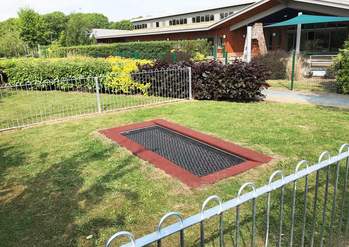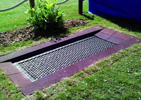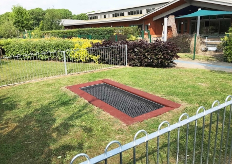 Manufactured from non-slip, vandal-resistant rubber jumping mat for medium height jumps within Galvanised Steel frame and fitted with side protection tiles.