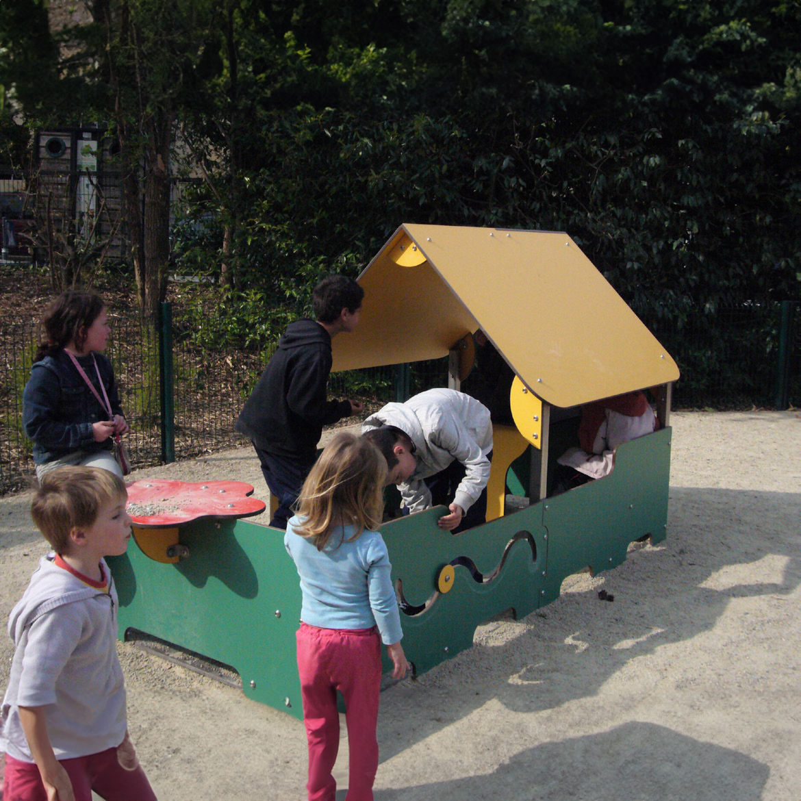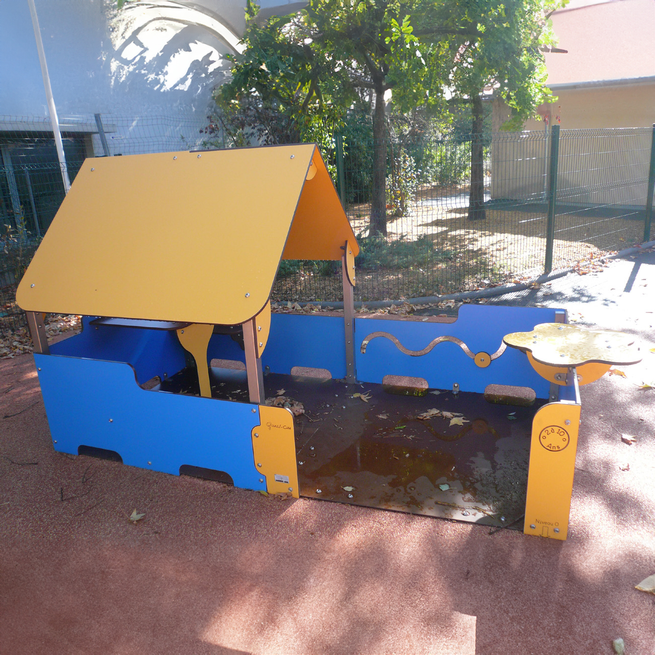 A great accessible playhouse with large opening, seating and table with kiosk space for creative play.