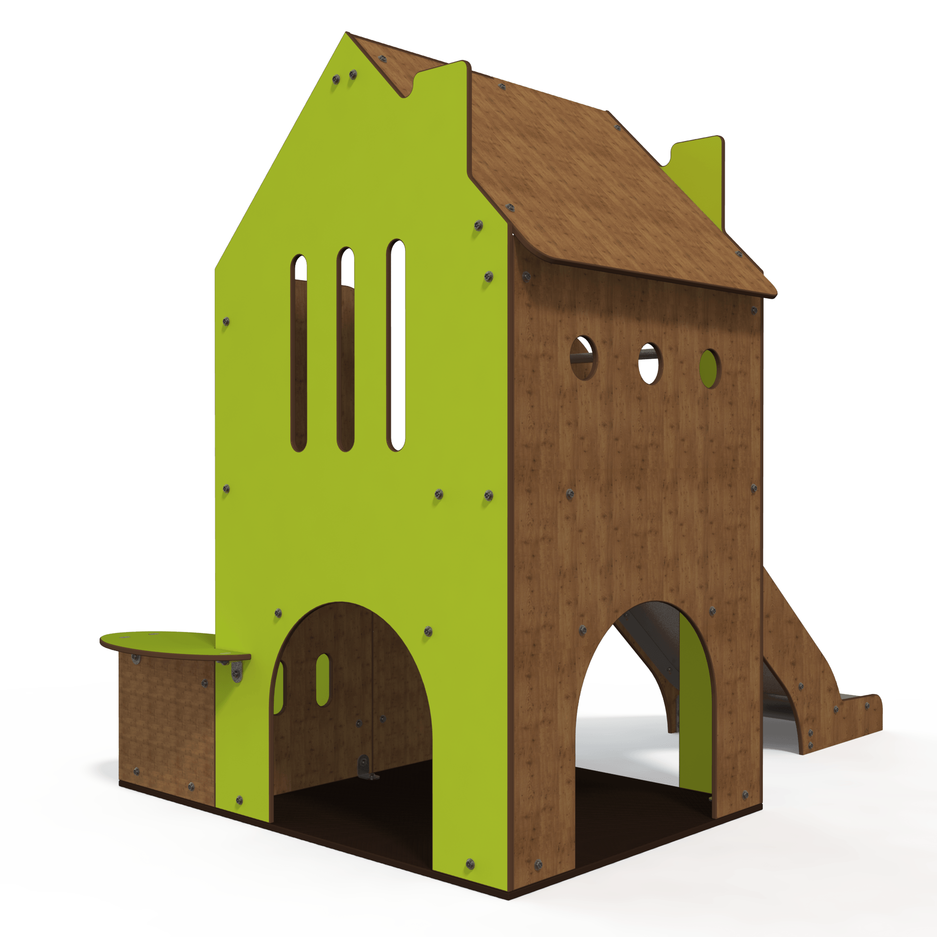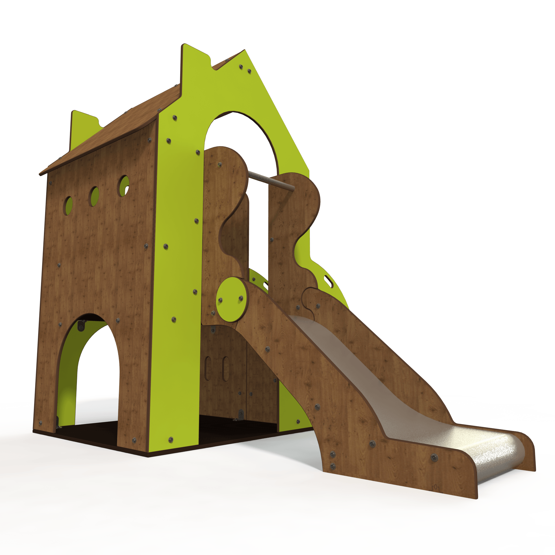The BA 06-0320 baby playhouse multiplay unit features low-level platforms, slides, and sensory panels designed for children aged 1–3 years. This steel multiplay unit encourages early physical activity and sensory exploration in a safe, engaging environment, ideal for nurseries and early years settings.