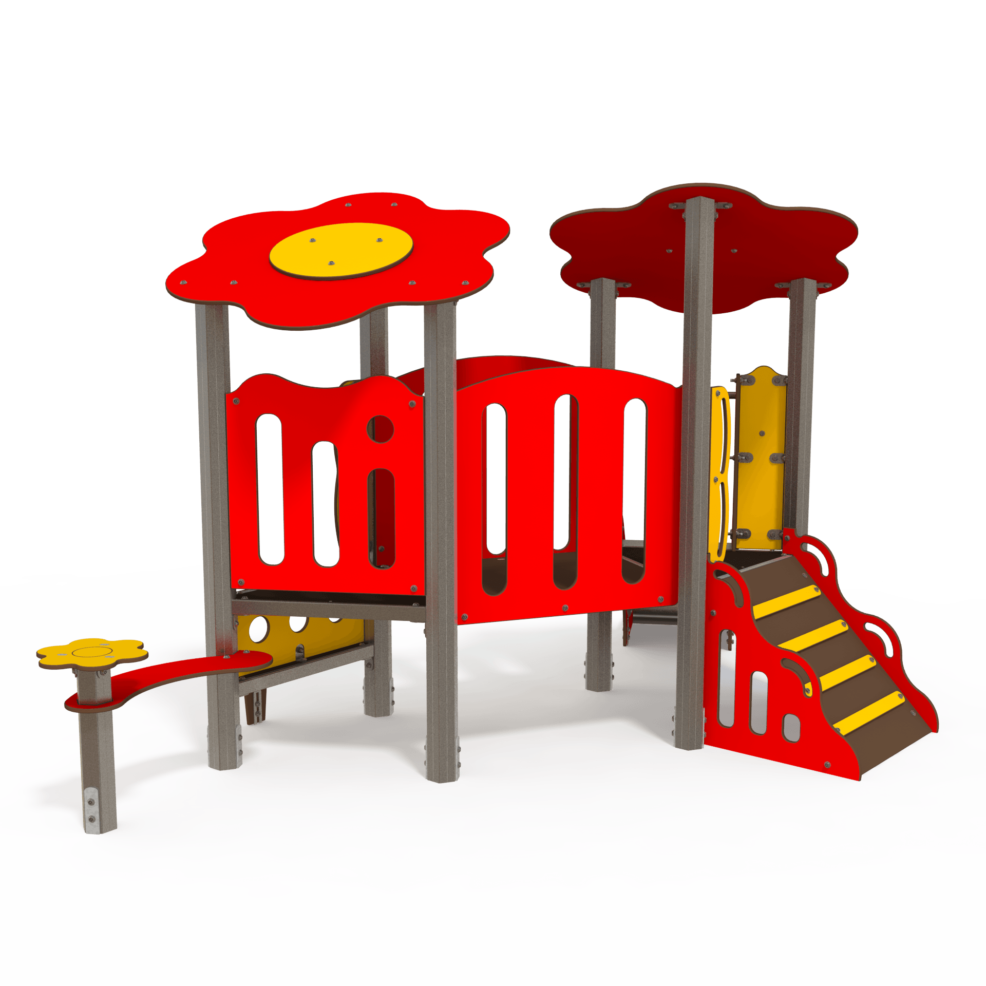 The BA 06-2007 baby playhouse multiplay unit is designed for ages 1–3 years. Featuring low-level platforms, slides, and sensory panels, it encourages early physical and sensory development in a safe environment.