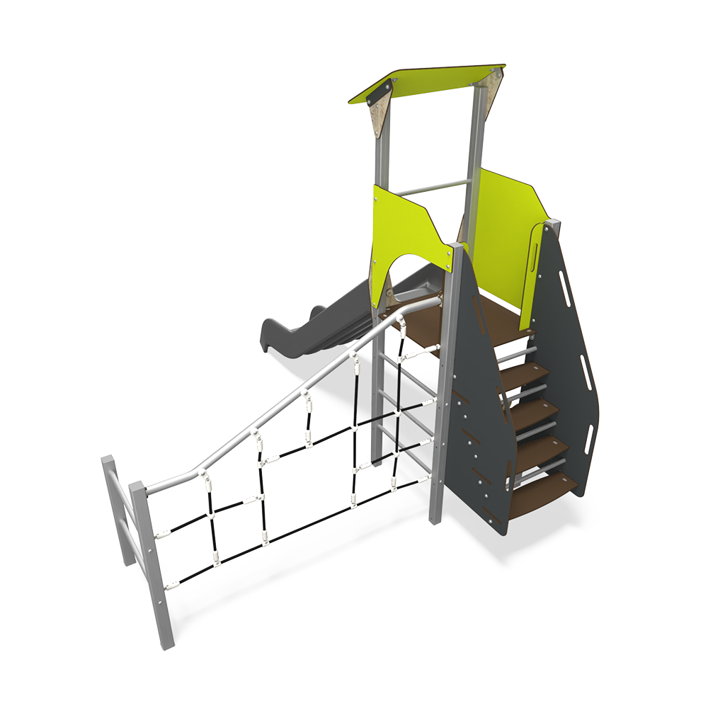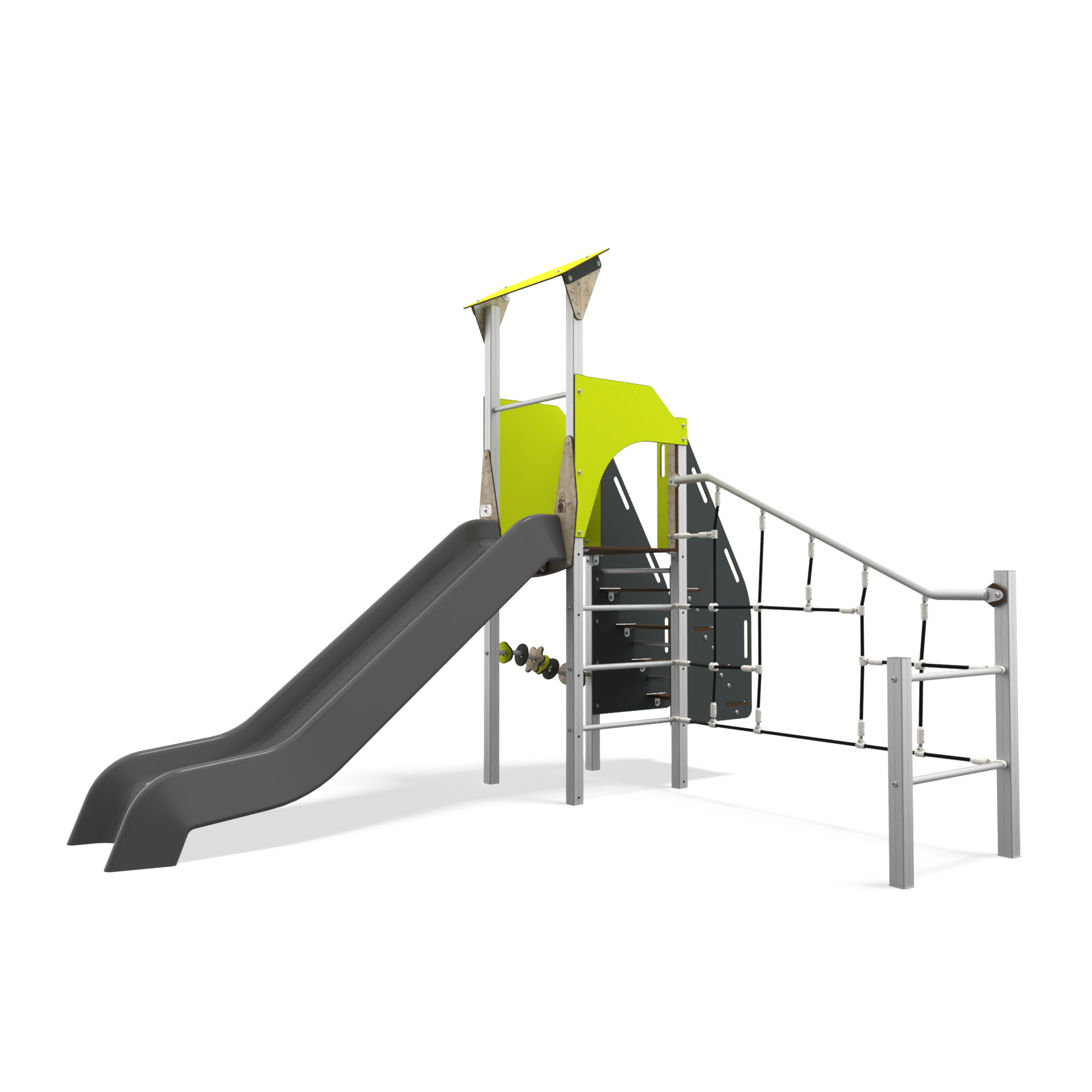 CO 12-1009-X29 is a steel multiplay unit with HDPE panels from the Extra Cool (Extra) range by Quali-Cité. Designed for children aged 3–14 years, it features HDPE colour panels, slides, and climbing features. Built from galvanised steel to EN1176 standards. Contact Caloo UK for pricing and installation details.