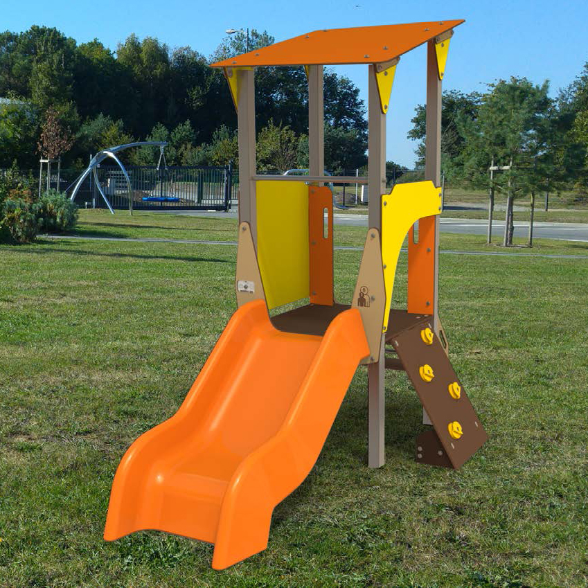Our cool range is a perfect low cost option for any playground. Our mini slide with roof, grab bar, climbing wall and steps provides children with shelter whilst waiting to use the slide. Children can chose between the steps or climbing wall to access the slide, whilst the grab bar can help increase their confidence in using the slide.
