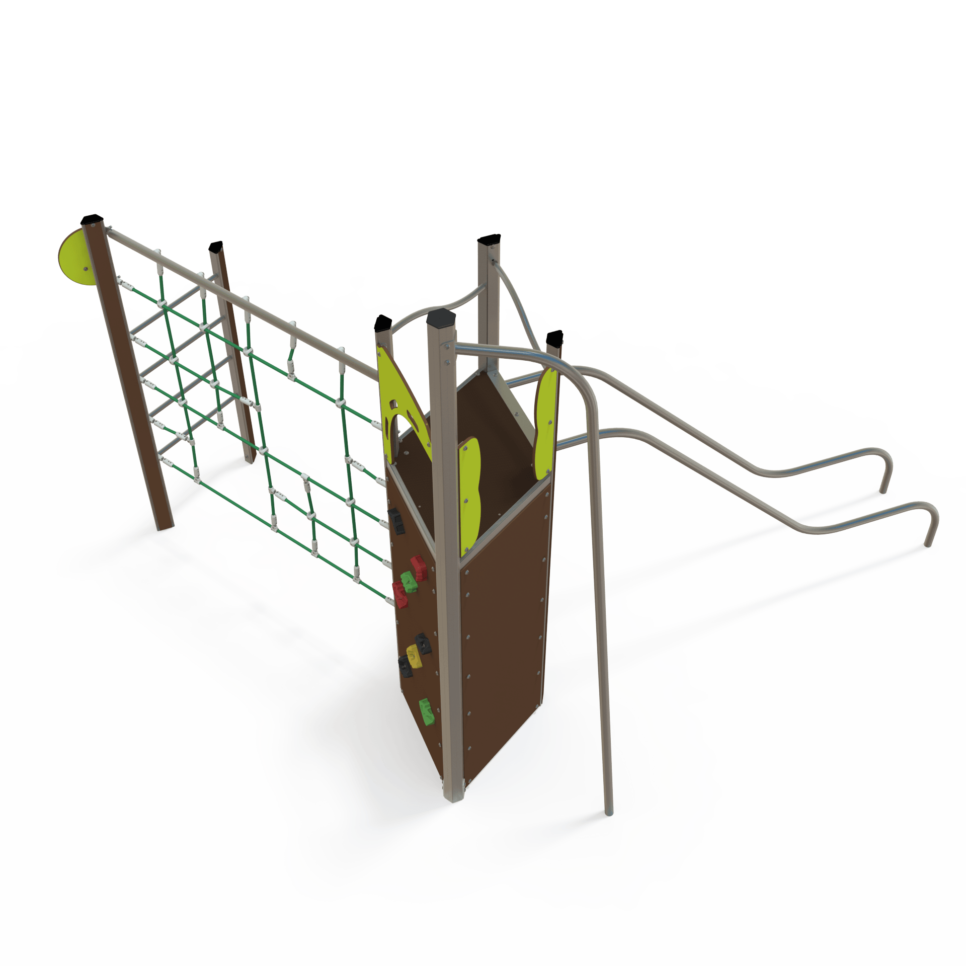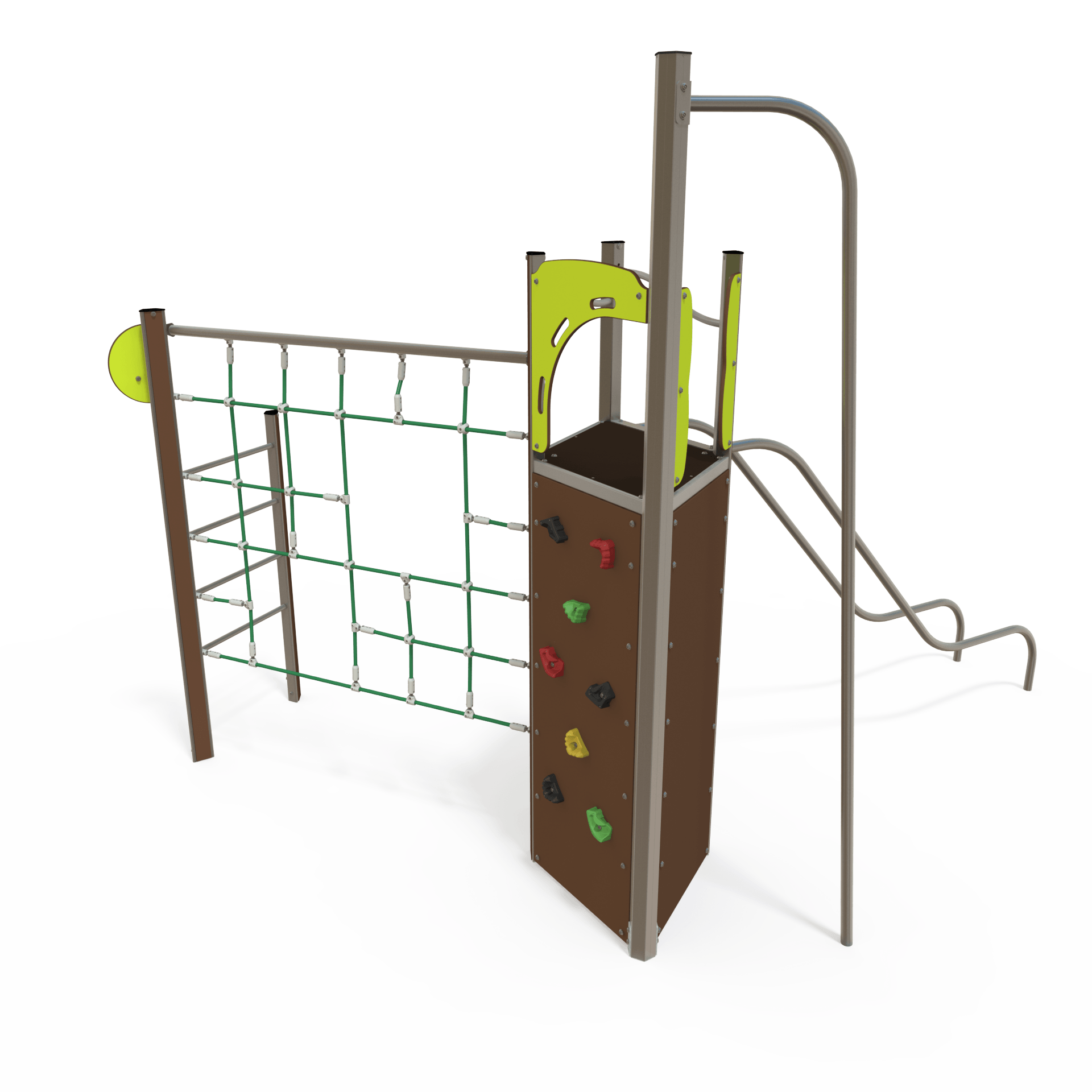 The EQ 18-1005 is a balance and climbing multiplay unit designed for children aged 3–12 years. It features balance beams, climbing elements, and activity panels to encourage physical activity and coordination in playgrounds.
