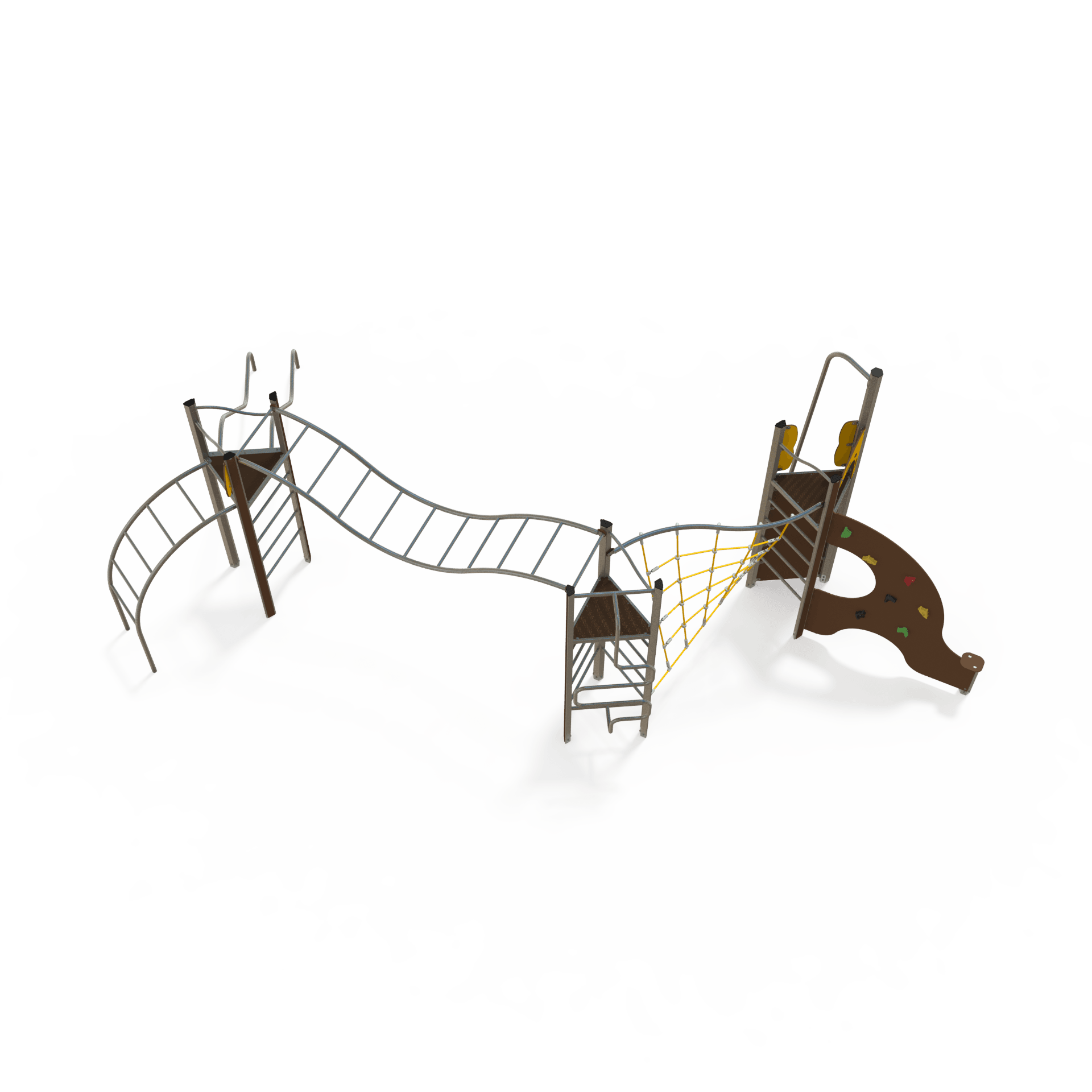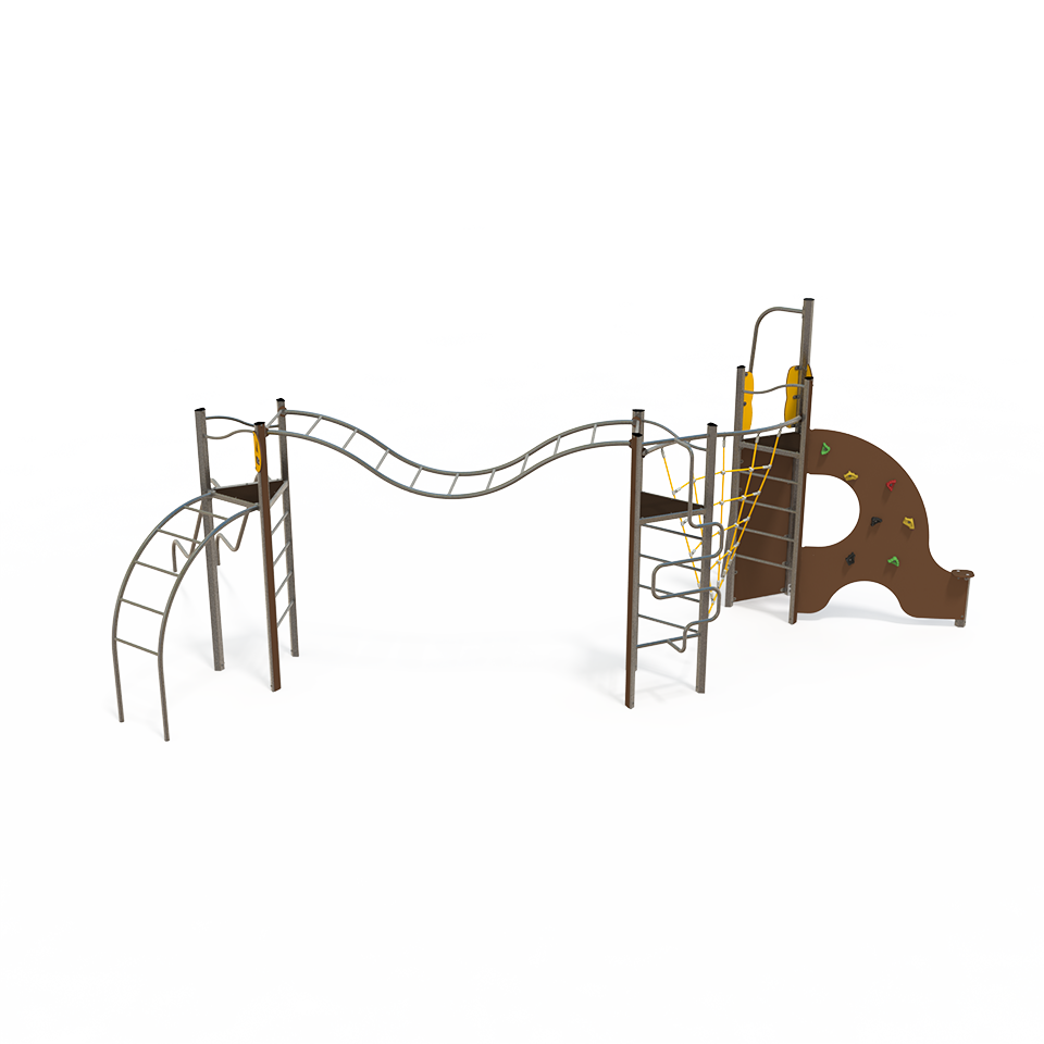 The EQ 18-3003 is a balance and climbing multiplay unit designed for children aged 3–12 years. It features balance beams, climbing elements, and activity panels to encourage physical activity and coordination in outdoor play areas.