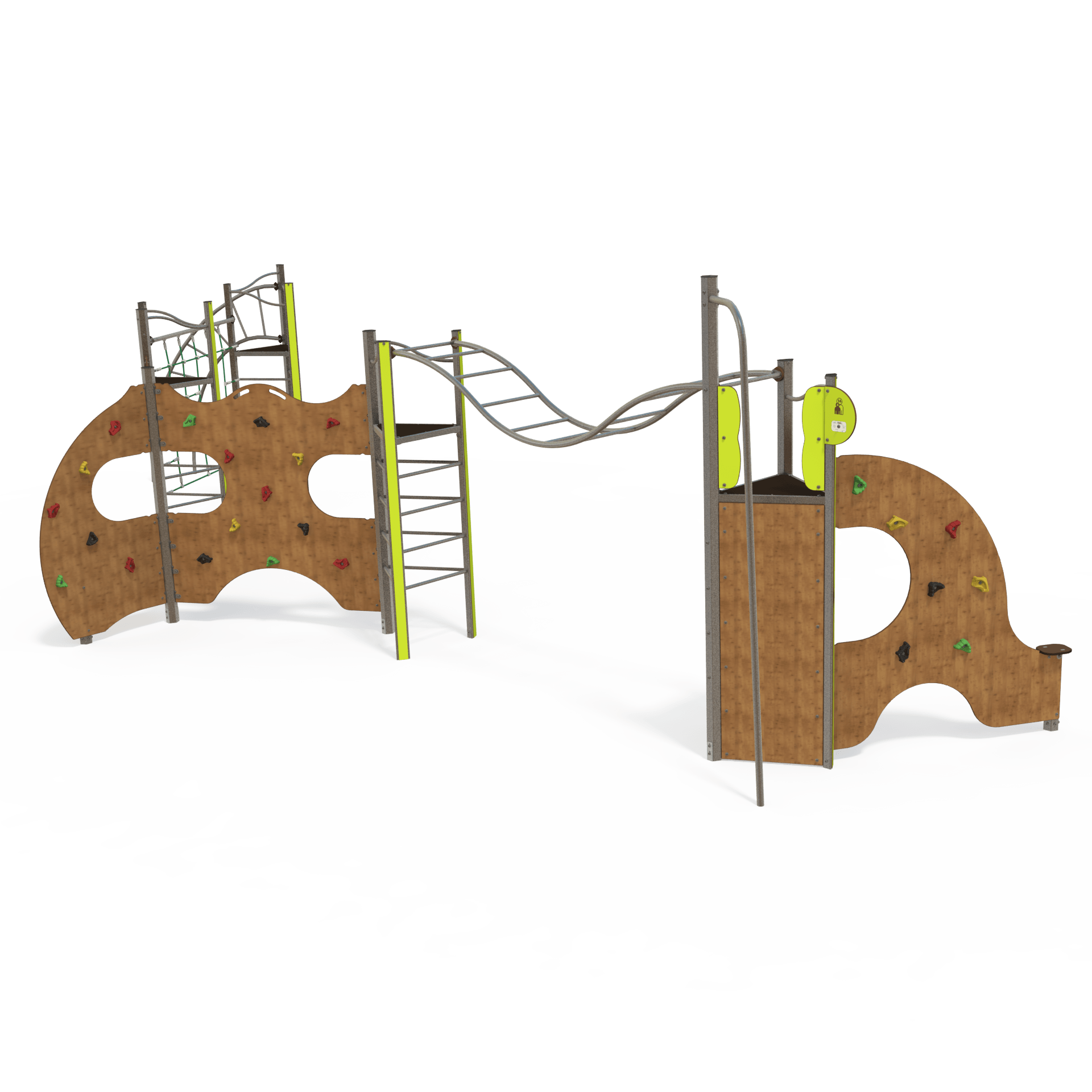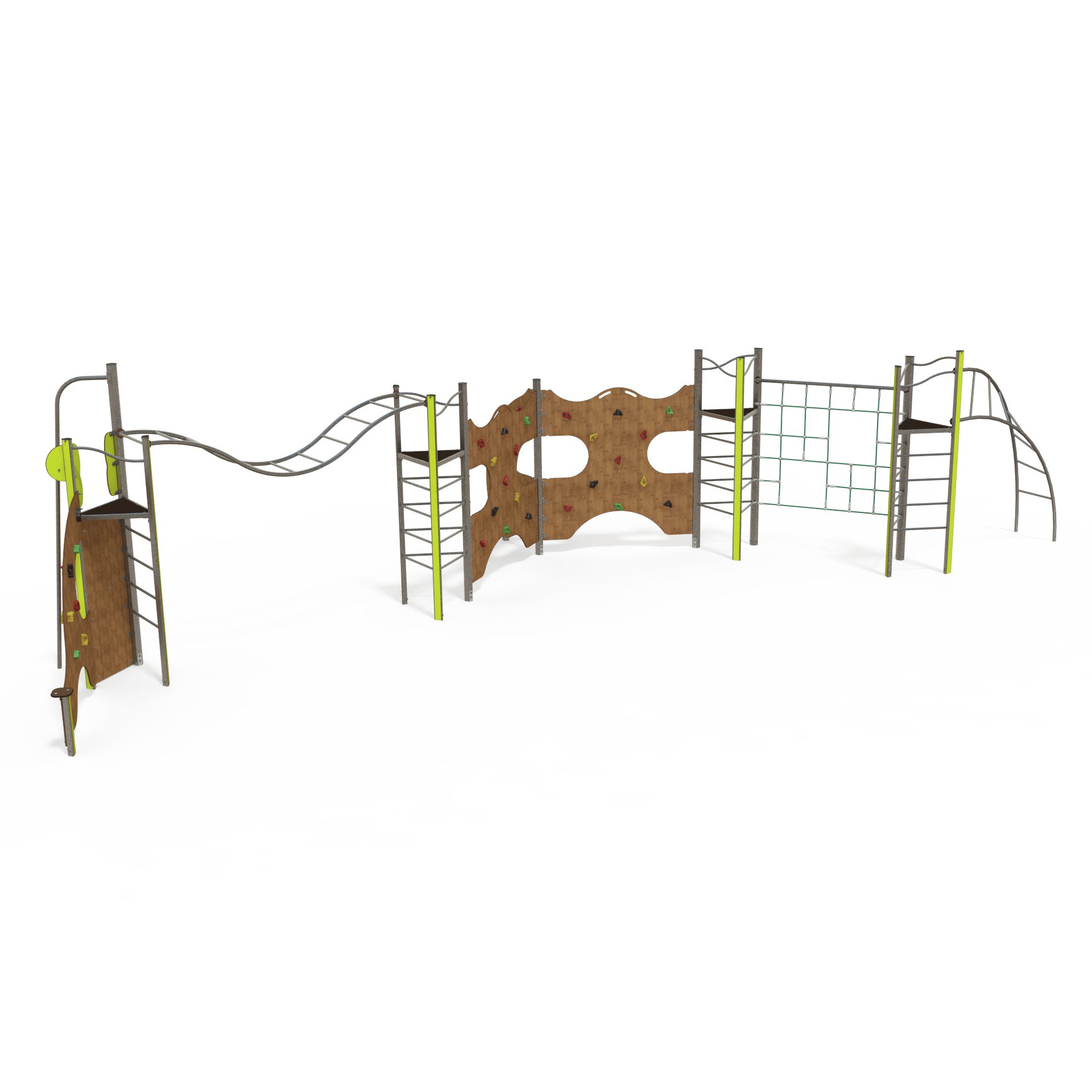 The EQ 18-4012 is a balance and climbing multiplay unit designed for children aged 3–12 years. It features balance beams, climbing elements, and activity panels to encourage active play and coordination development in outdoor playgrounds.