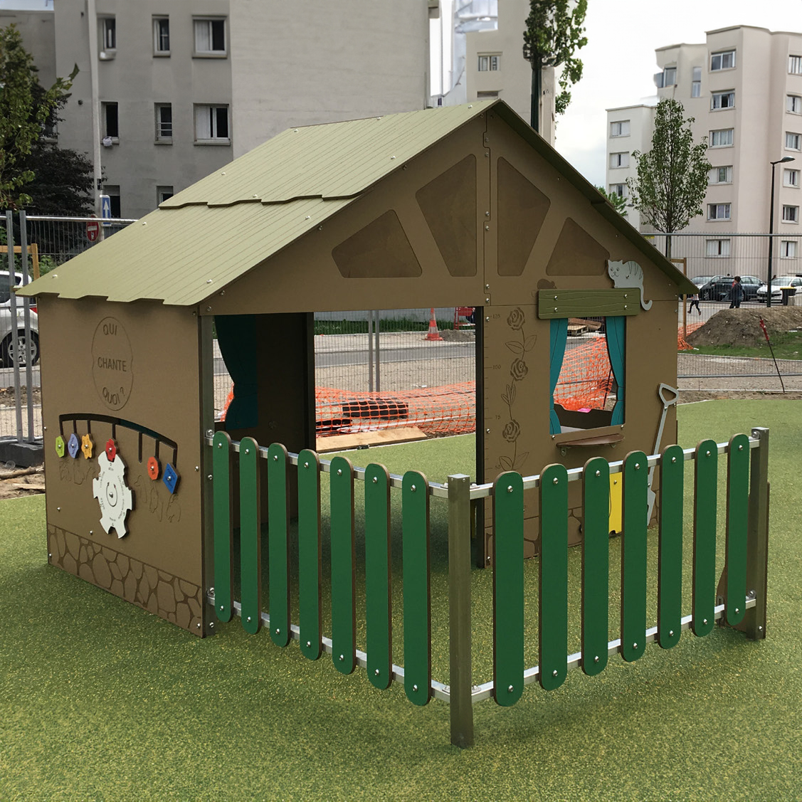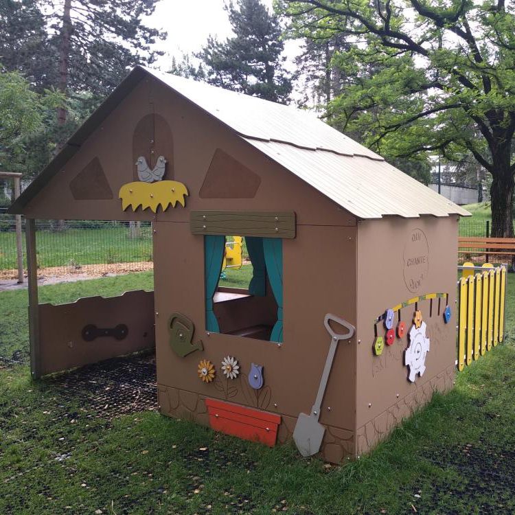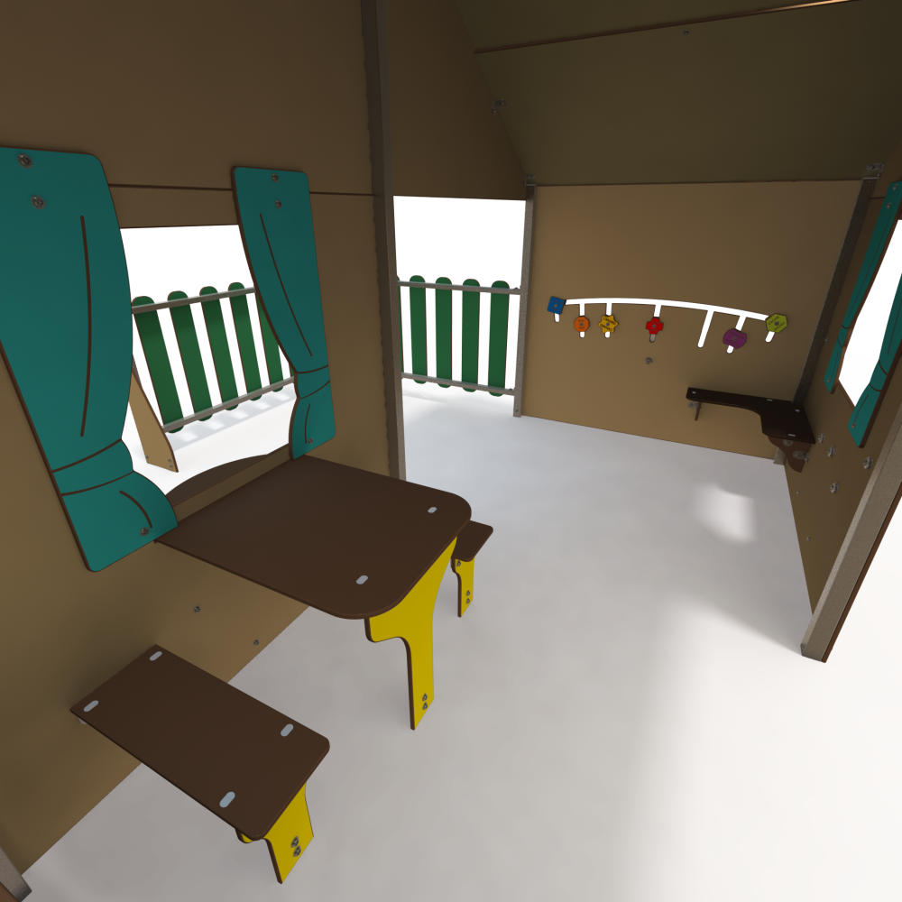 This large playhouse is great for lots of children to explore and play. With seating and loads of space inside, play panels and fun themed panels around the outside this unit will provide hours of fun!