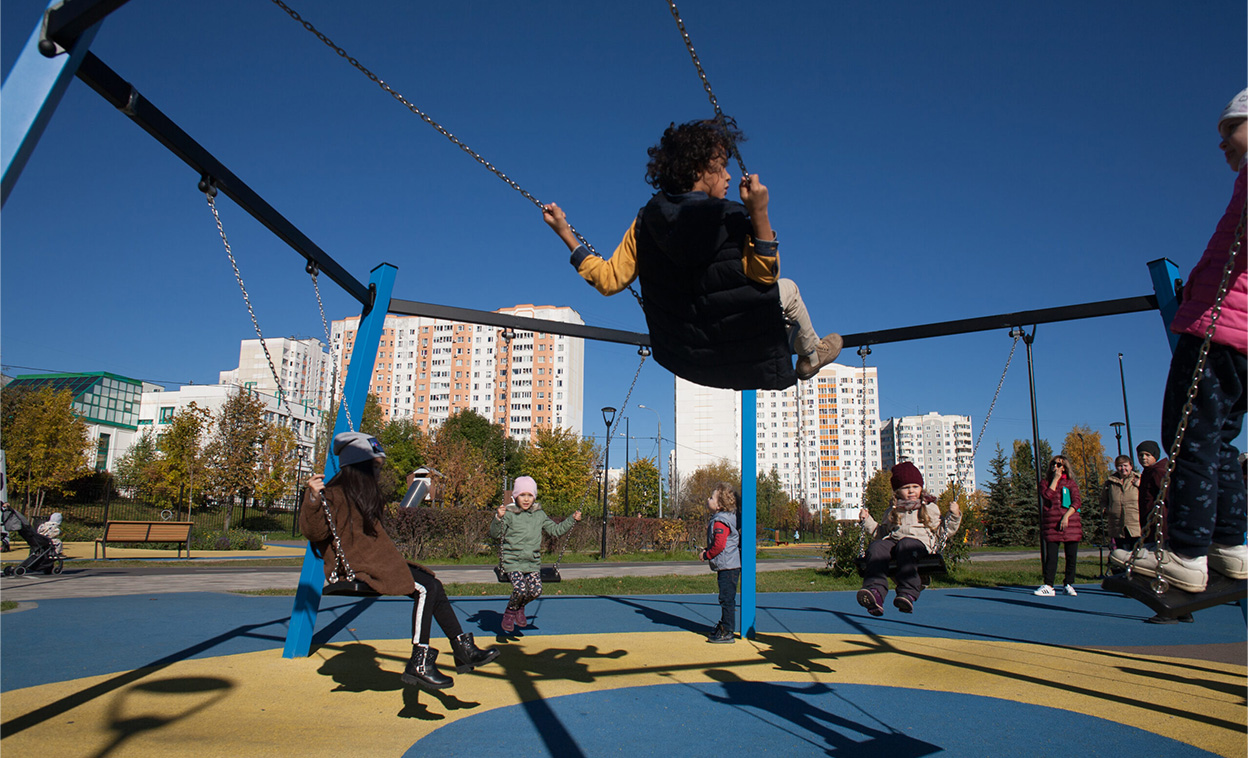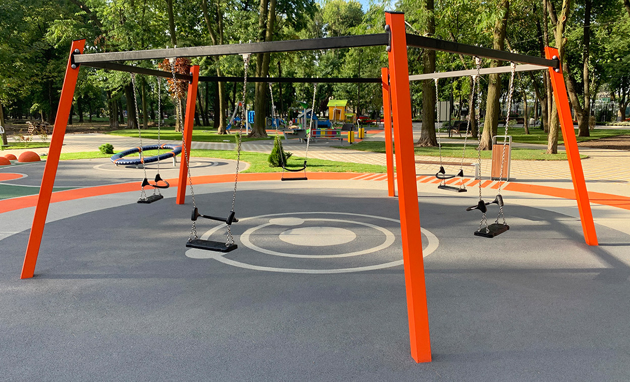 A fantastic social swing unit with five junior swings. A great place for children to socialise and relax.