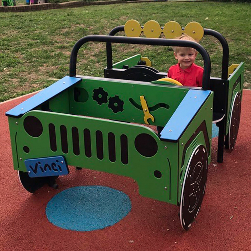 The Jeep is a great play unit, with seating at the back, a driving panel in the centre and cogs and fixing in the front.