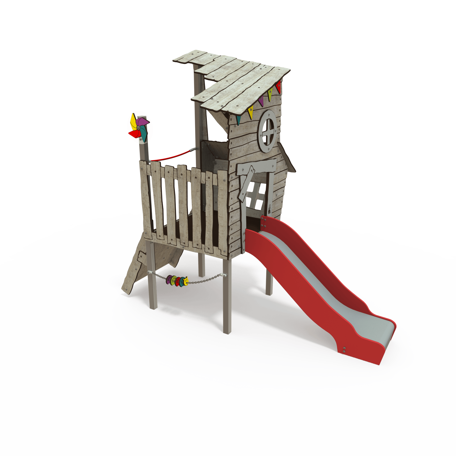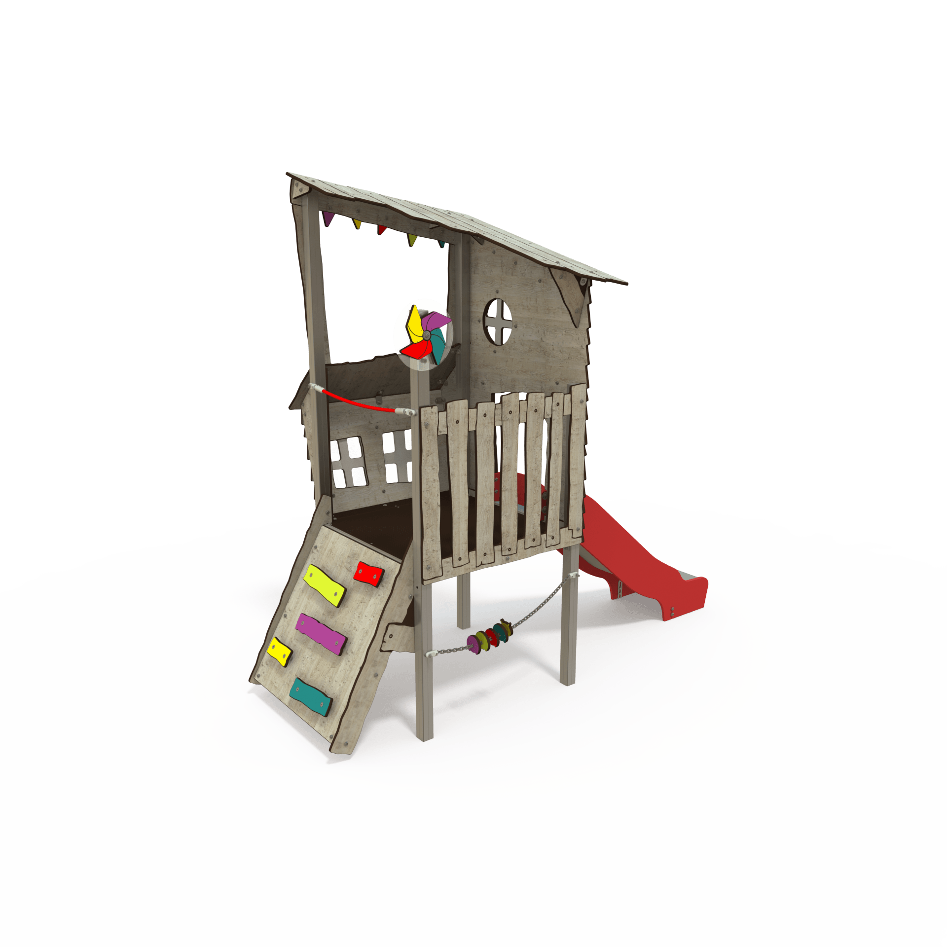 KA 09-1001 is a Ka’Hûte steel multiplay unit from the Kahute range by Quali-Cité. Designed for children aged 3–12 years, it features HPL wooden-effect panels, slides, and climbing features. Built from galvanised steel to EN1176 standards. Contact Caloo UK for pricing and installation details.