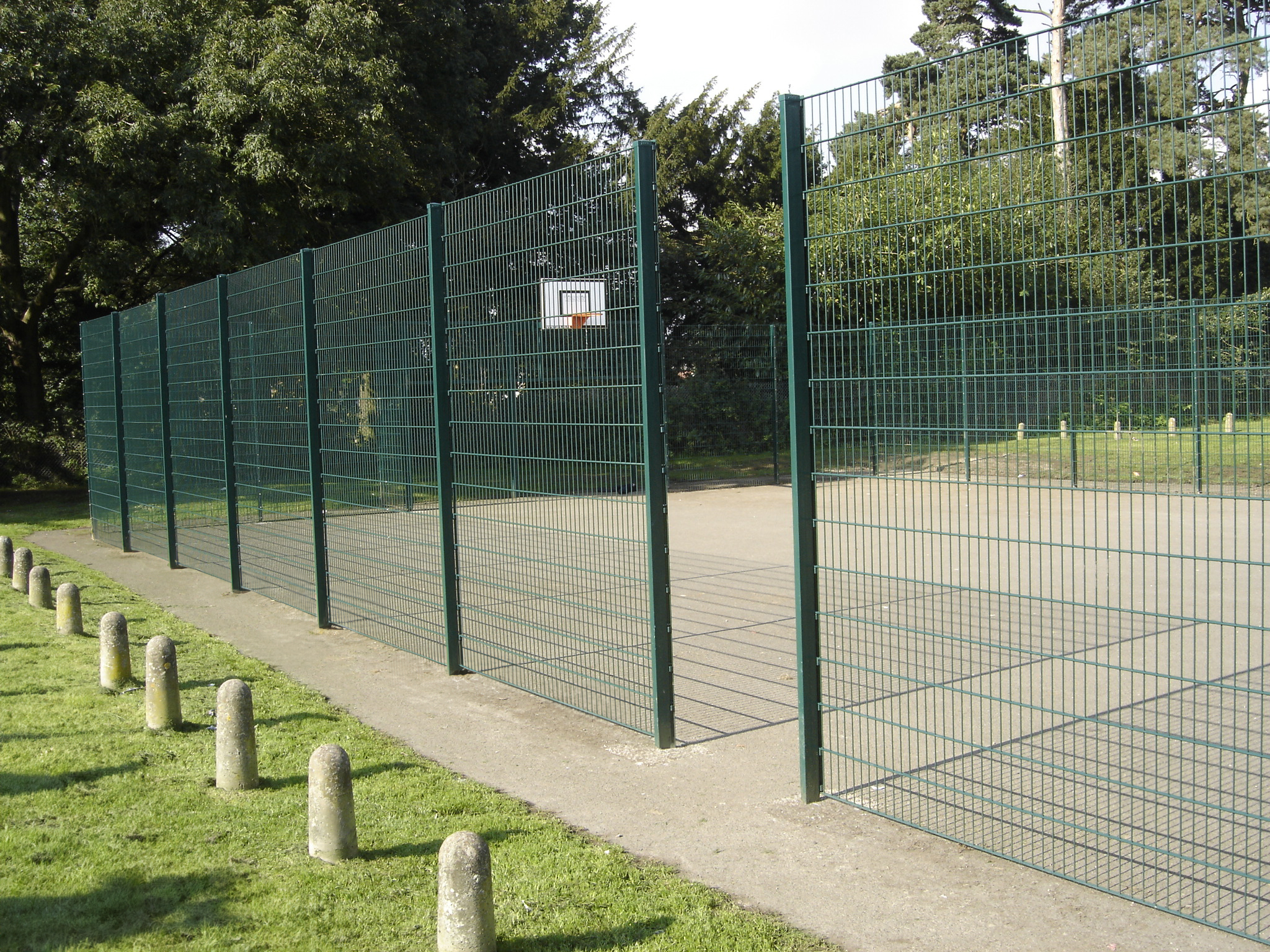 League Sports Fencing is perfect for areas where high intensity ball impact is not expected. League fencing features a lower specification of steel fencing by utilising twin 6mm horizontal and 5mm vertical bars with 50mm x 200mm aperture to full height.Galvanised and Powder Coated available in your choice of colour. Rectangular fence posts and flush panel fixing for excellent ball rebound. Goals and gates to match fencing.
