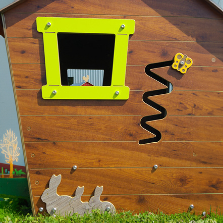 The Log Cabin Playhouse is a lovely little unit with outside and inside seating. With a moving butterfly and small craw through the door at the back, this is a great unit to add into the play area.
