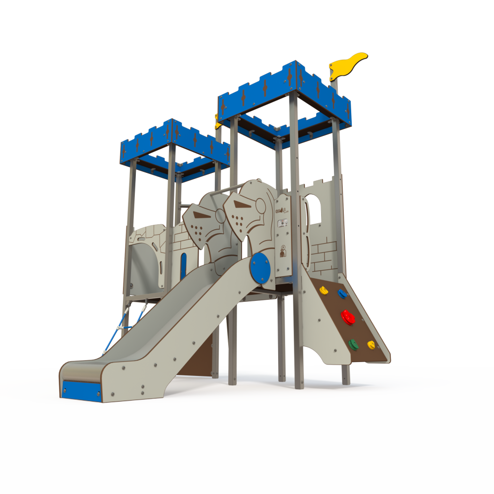 This low level double castle is great for little ones, with climb net, climb wall, fireman’s pole, mini bridge and slide this is perfect for sparking imagination and developing new skills.