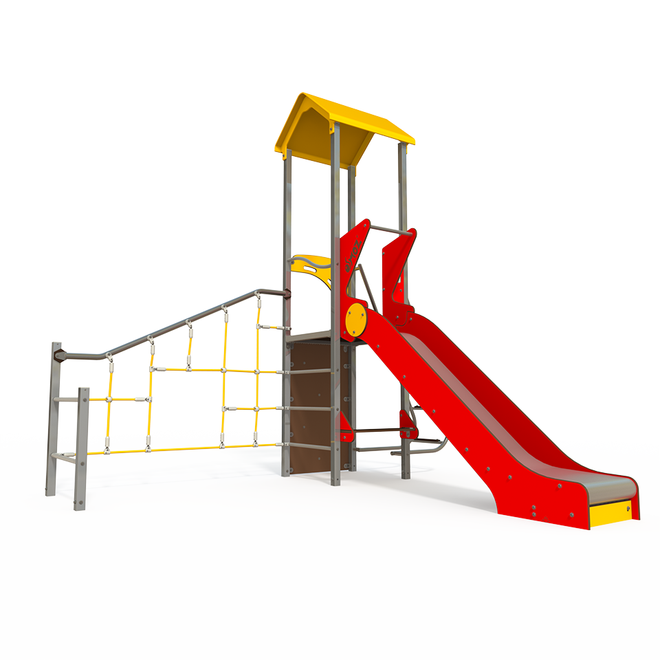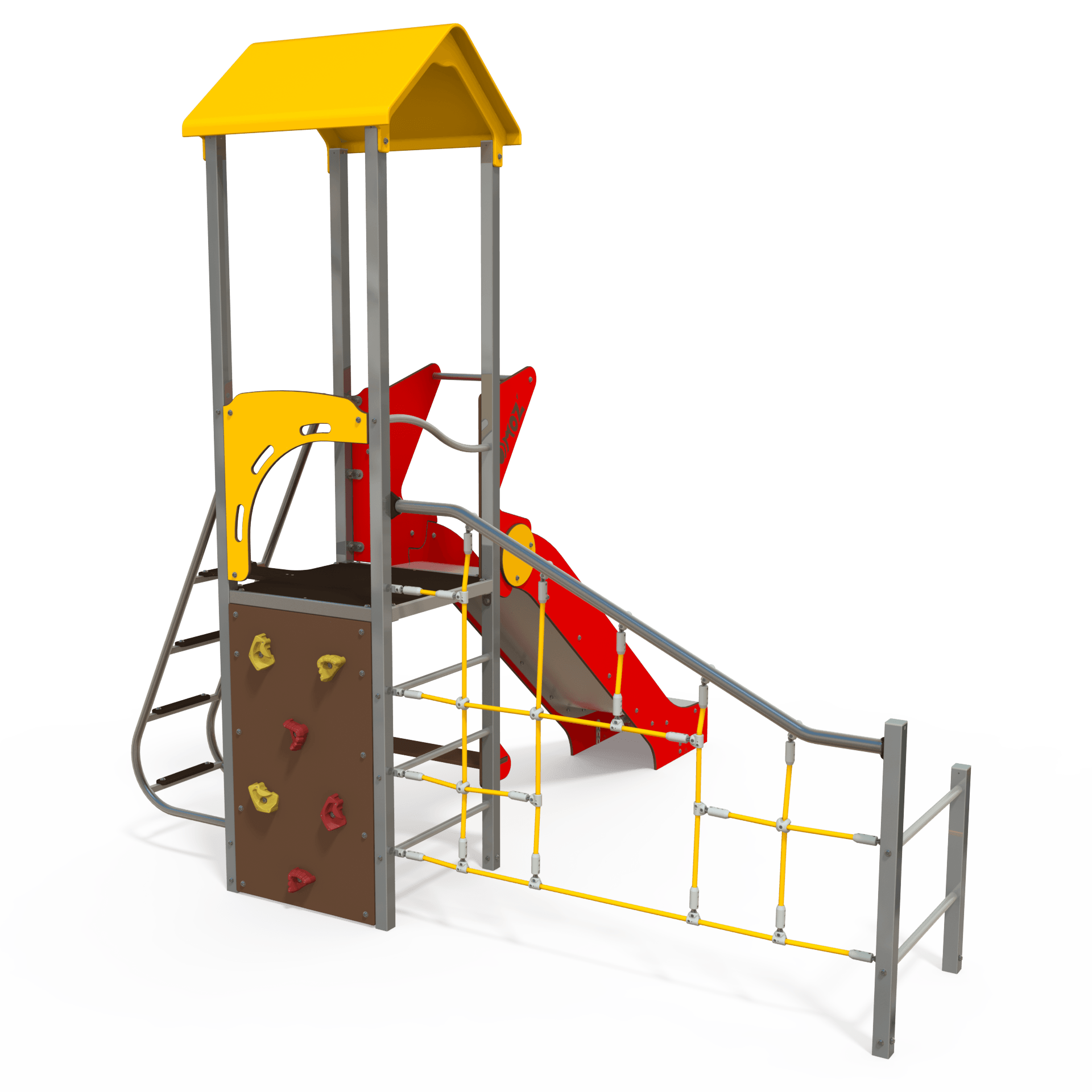 The OS 12-1007 is an Osmoz steel multiplay unit designed for children aged 3–12 years. It features themed panels, slides, and climbing activities, promoting active play and social interaction in outdoor spaces.