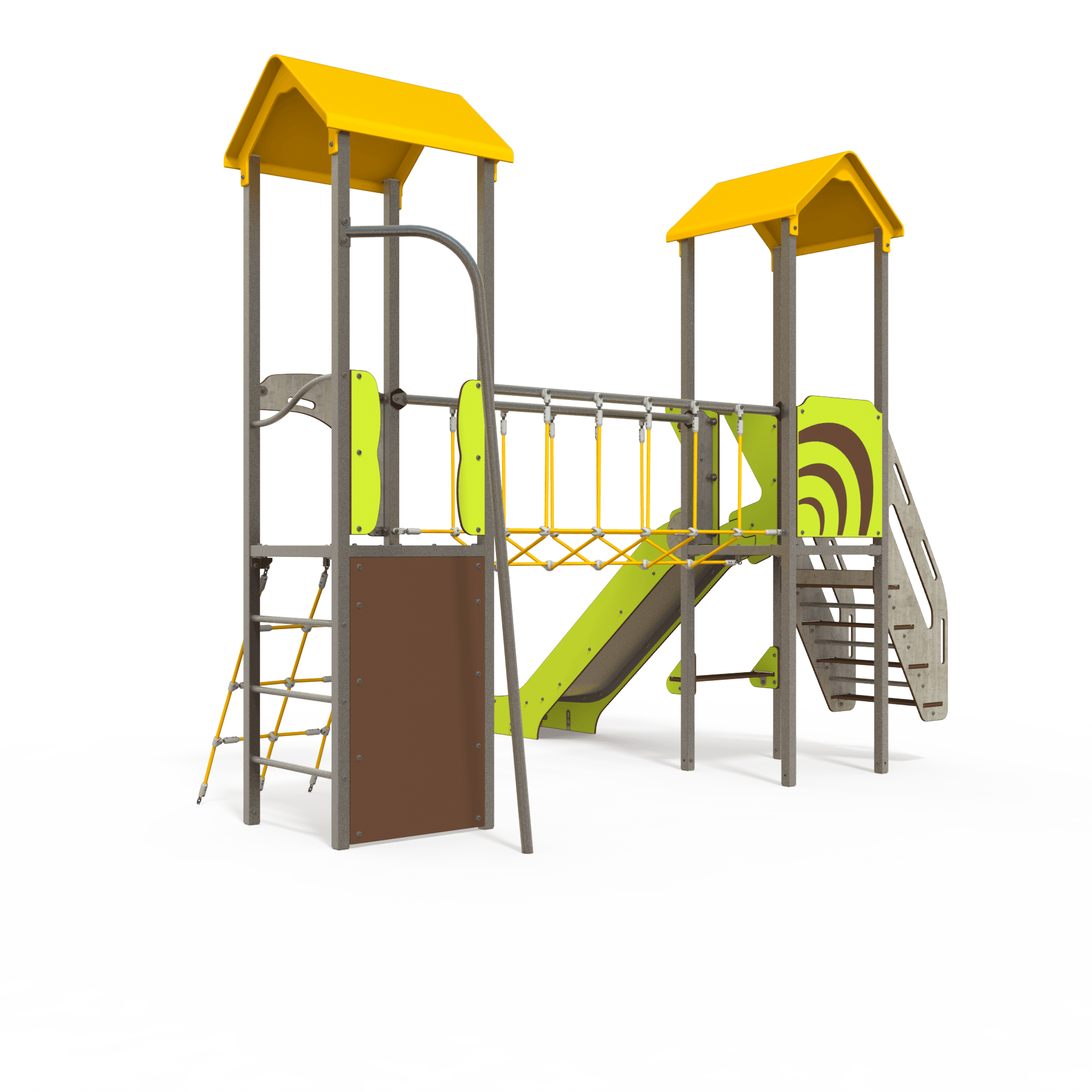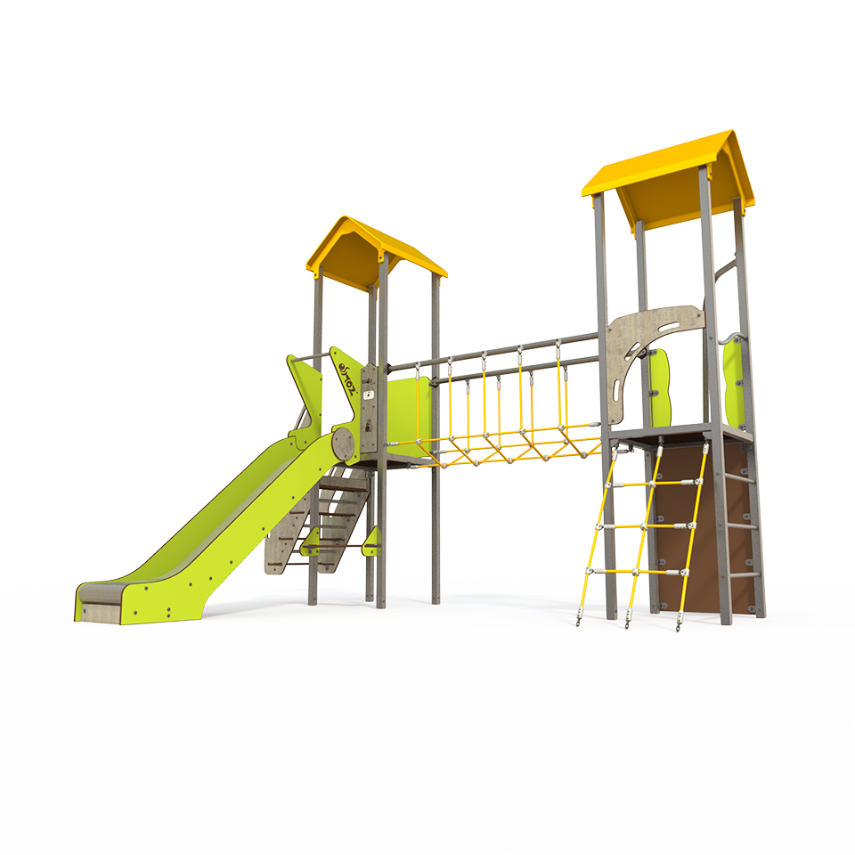 The OS 12-2011 Osmoz steel multiplay unit offers themed panels, slides, and climbing activities for children aged 3–12. Durable and engaging, it encourages active play and social interaction in outdoor playgrounds.