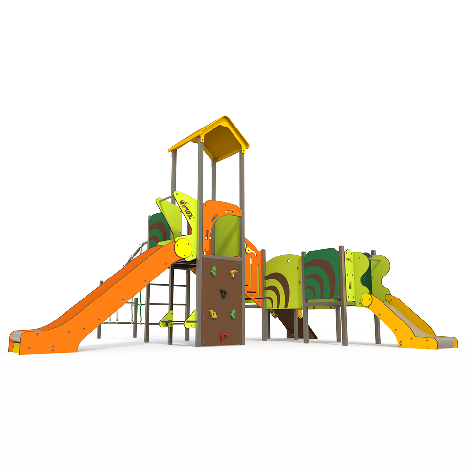 The OS 12-3002 Osmoz steel multiplay unit offers themed panels, slides and climbing activities for children aged 3 to 12. Durable and engaging, it encourages active play and social interaction in outdoor spaces.