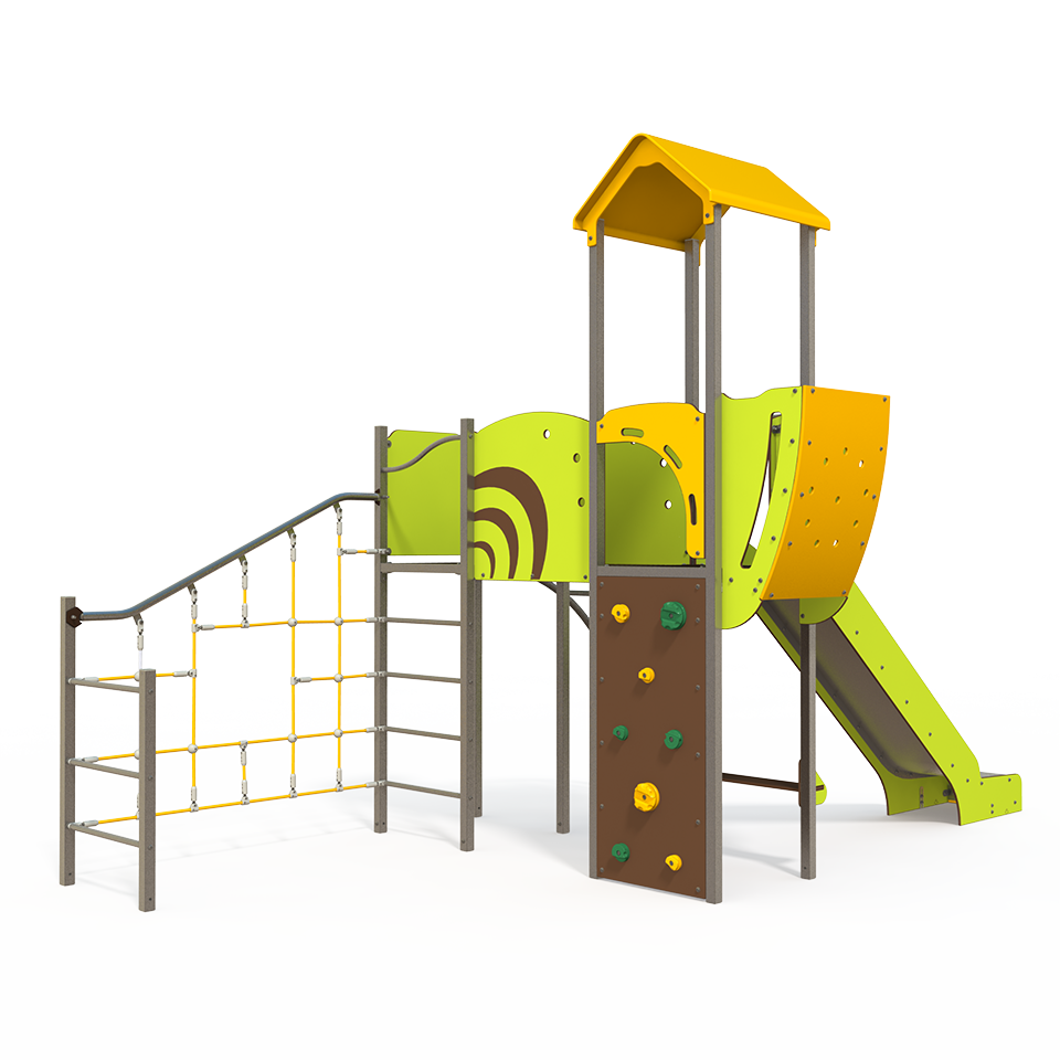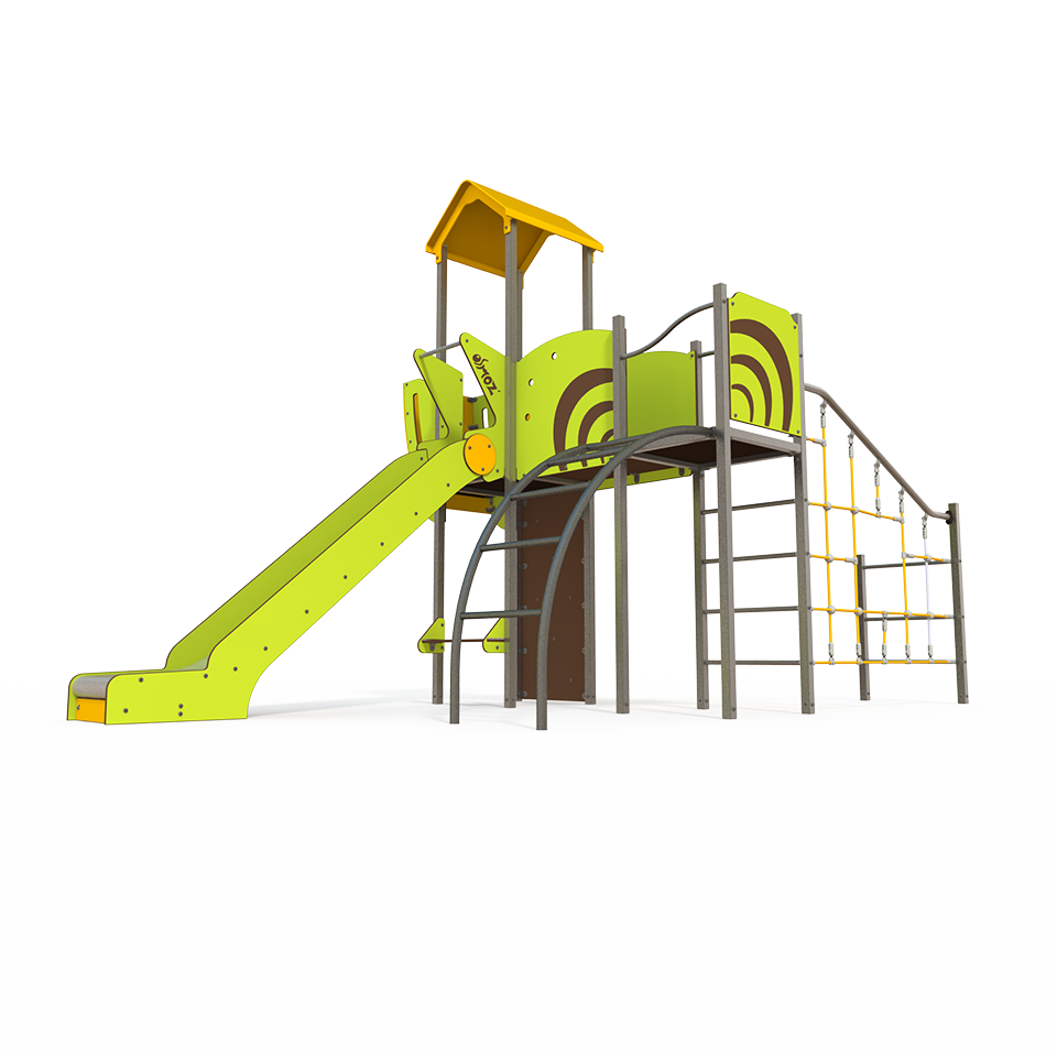 The OS 15-2002 Osmoz steel multiplay unit offers themed panels, slides and climbing activities for children aged 3 to 12. Durable and engaging, it encourages active play and social interaction in outdoor spaces.
