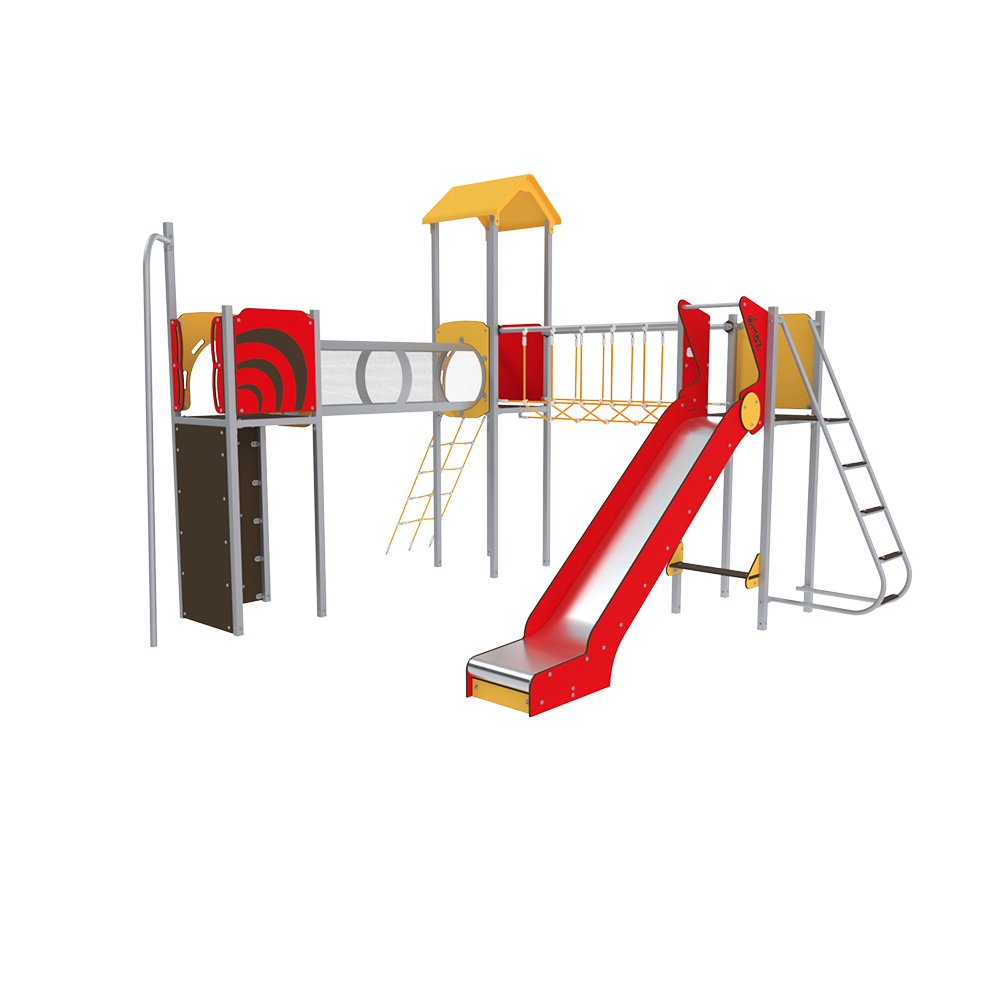 The OS 15-3002 Osmoz steel multiplay unit offers themed panels, slides, and climbing activities. Designed for children aged 3–12, it encourages active and imaginative play in safe, durable steel construction.