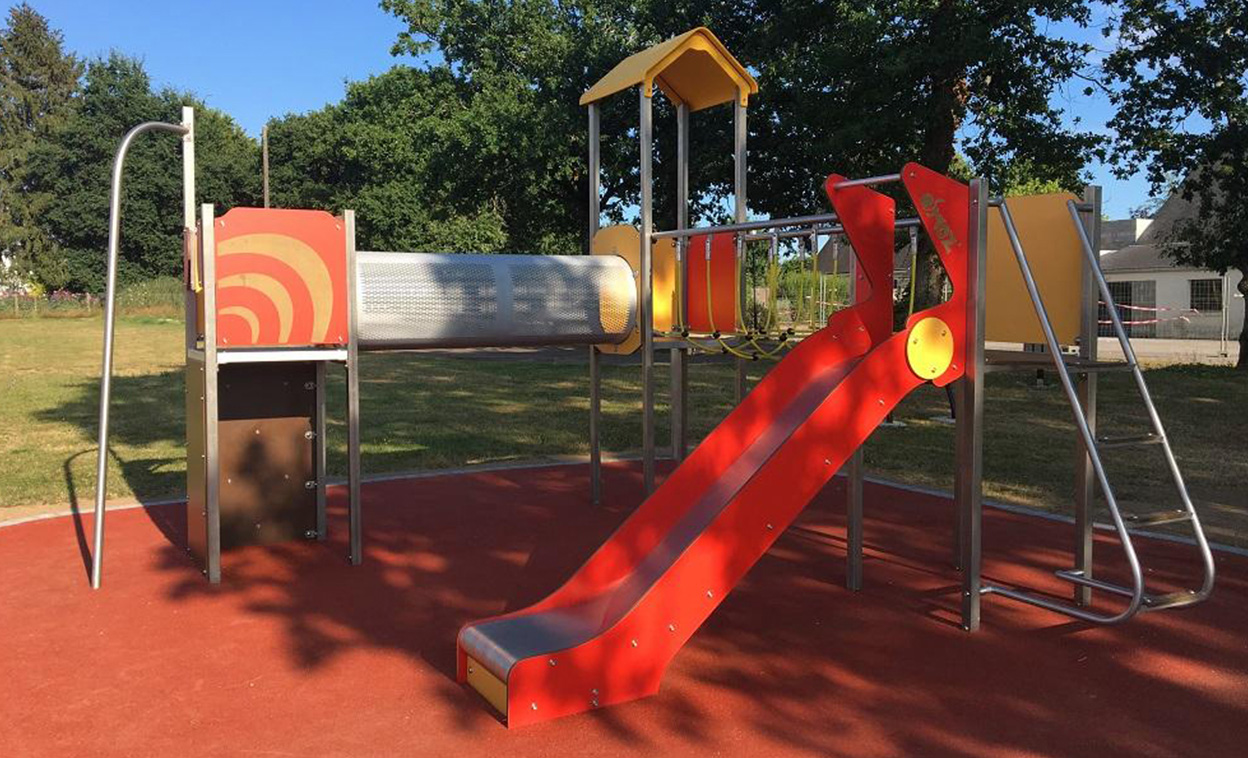 The Osmoz Superplay is a stunning play unit. Offering high up play the unit has a climb wall, ladder, tunnel, rope bridge, firemans pole and slide.Holding up to 20 children, this is perfect for a busy playground. The roof needs to stay yellow but the rest of the panels can be changed to red, yellow, green, brown or grey to suit your outside space.