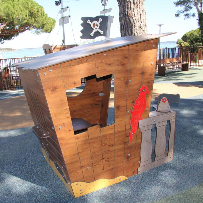 ARRRGHHHH. Spark children’s imagination with the Pirate themed playhouse. With movable cannon, ships wheel, inside seating and treasure map inside, children with love this fun addition to any play space.