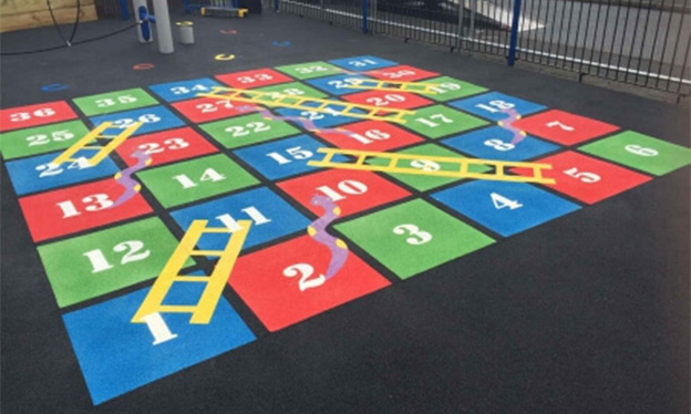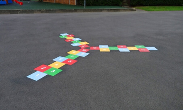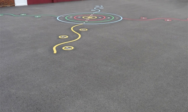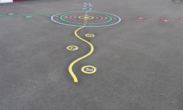 We offer a wide range of play surface markings to enhance your floor space for further fun and skill development. We can also provide bespoke solutions. Please download the product sheets below for premade play surface markings available.