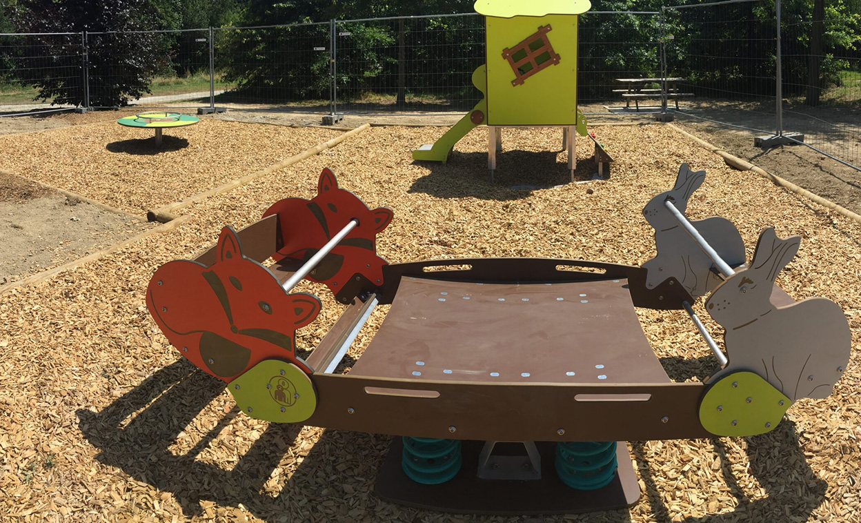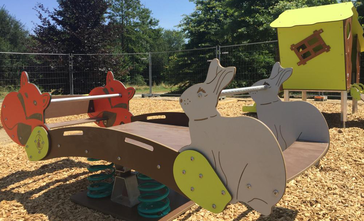 This rabbit and fox 4 way seesaw is great fun for all age groups. With a large platform the seesaw can hold up to six children. With a front and back bar children can hold on for added support if needed.