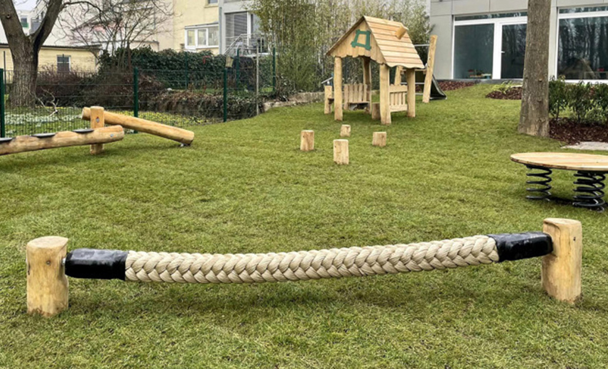 An alternative to the wooden balancing beams, this rope walkway is a little more difficult to cross since it moves slightly when walked over. A great way to improve a child’s mobility skill.