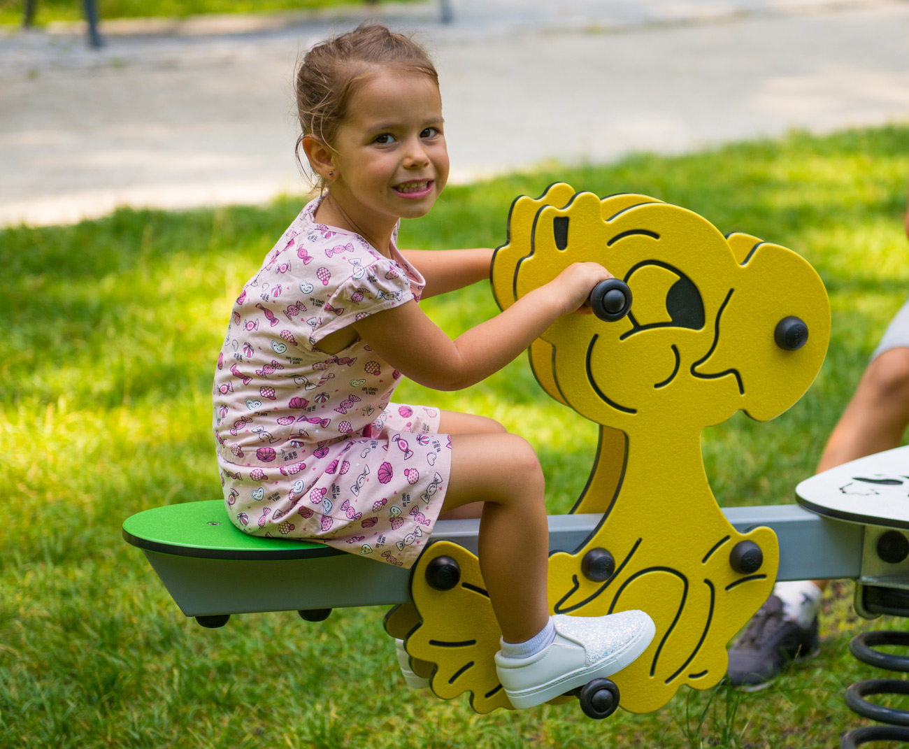 Three friends can enjoy the bird seesaw, with bouncy springs to move back and fourth.