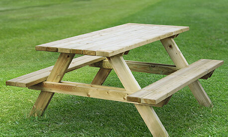 1.6m long picnic table – suitable for use in low to medium usage areas. Ground fixing anchors available.
