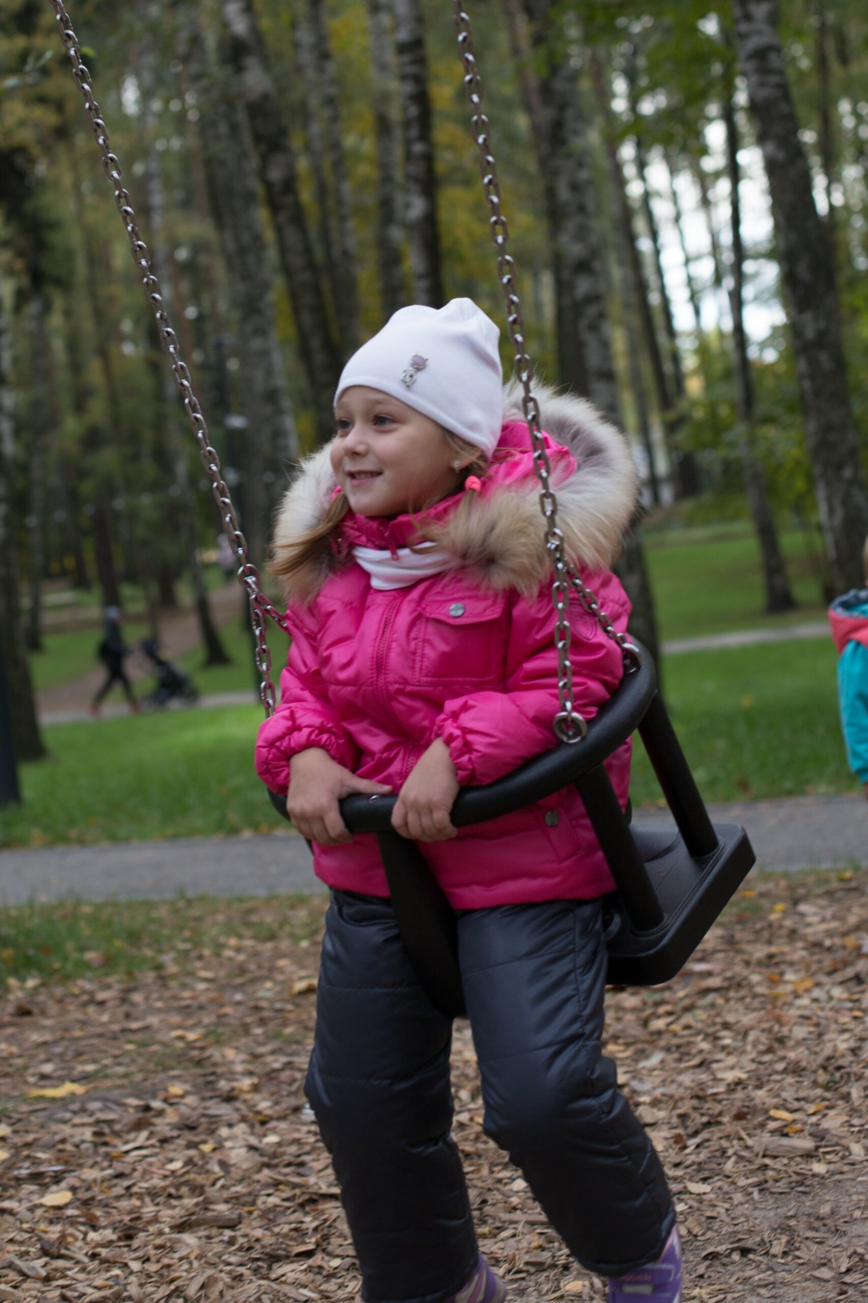 Two steel swing bay frame with two flat seats and one cradle seat.
